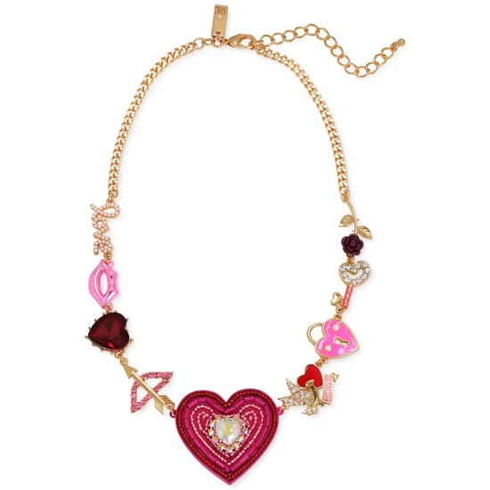 Fun charms feature a boldly beautiful heart on this INC International Concepts statement necklace.