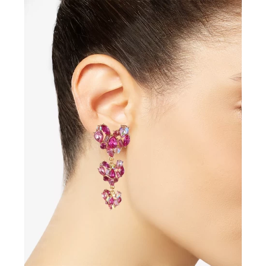 A trio of mixed stone hearts lend a romantic vibe to these triple drop earrings. INC International Concepts.