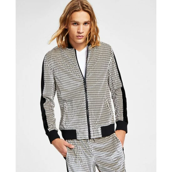 Bring a whole new level of style to your cool-weather wardrobe with the rich velour fabric and distinctive geometric pattern of this sporty tracksuit jacket from INC International Concepts.