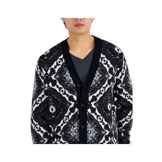INC International Concepts highlights layering style with the modern fit of this button-front cardigan, showcasing an allover tapestry design.