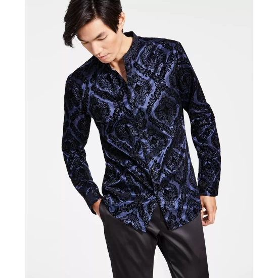 A rich, intricate flocked baroque pattern gives this INC International Conceptsยฎ shirt the distinctive style it needs to be an instant classic.