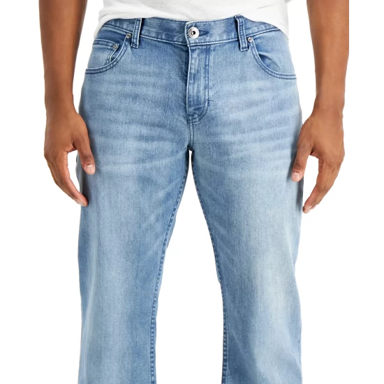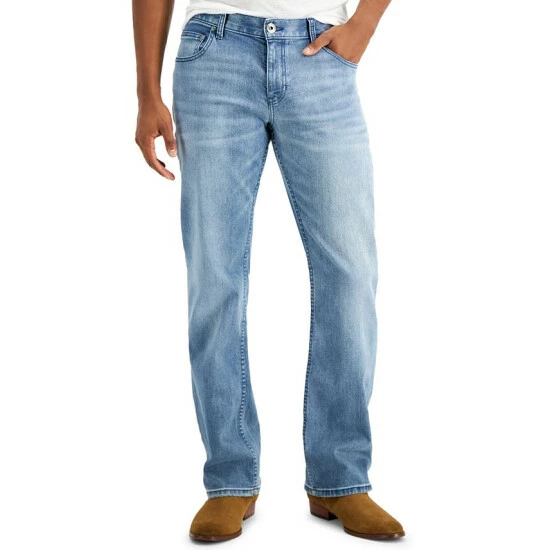 A light wash with fading and whiskering lend a homey vibe to these essential boot cut jeans from INC International Conceptsยฎ.