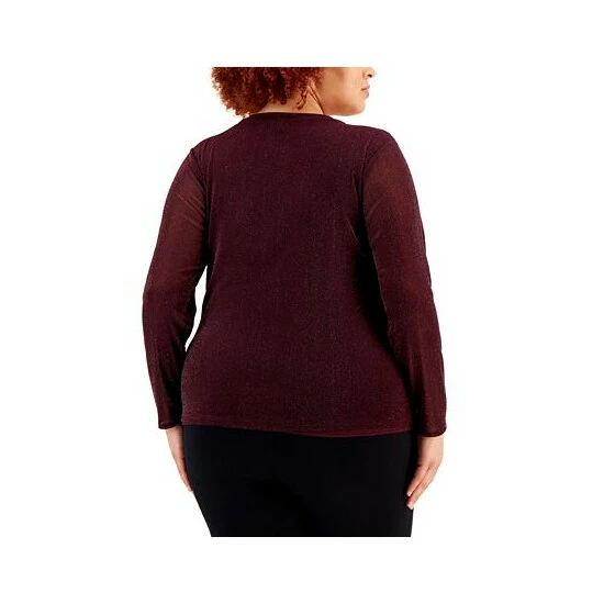 INC International Conceptsยฎ designs a plus size top with shine, thanks to a metallic-enhanced mesh knit.
