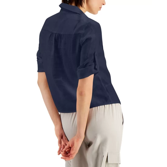 INC International Conceptsยฎ puts a contemporary spin on this cuffed-sleeve blouse with a breezy twisted hem.